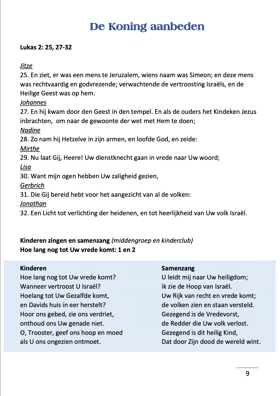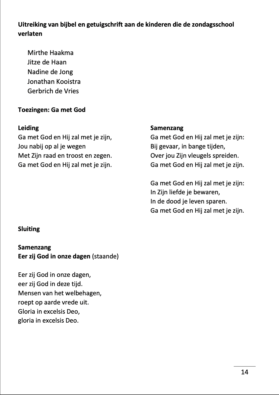 Diensten 9:15 en 14:00